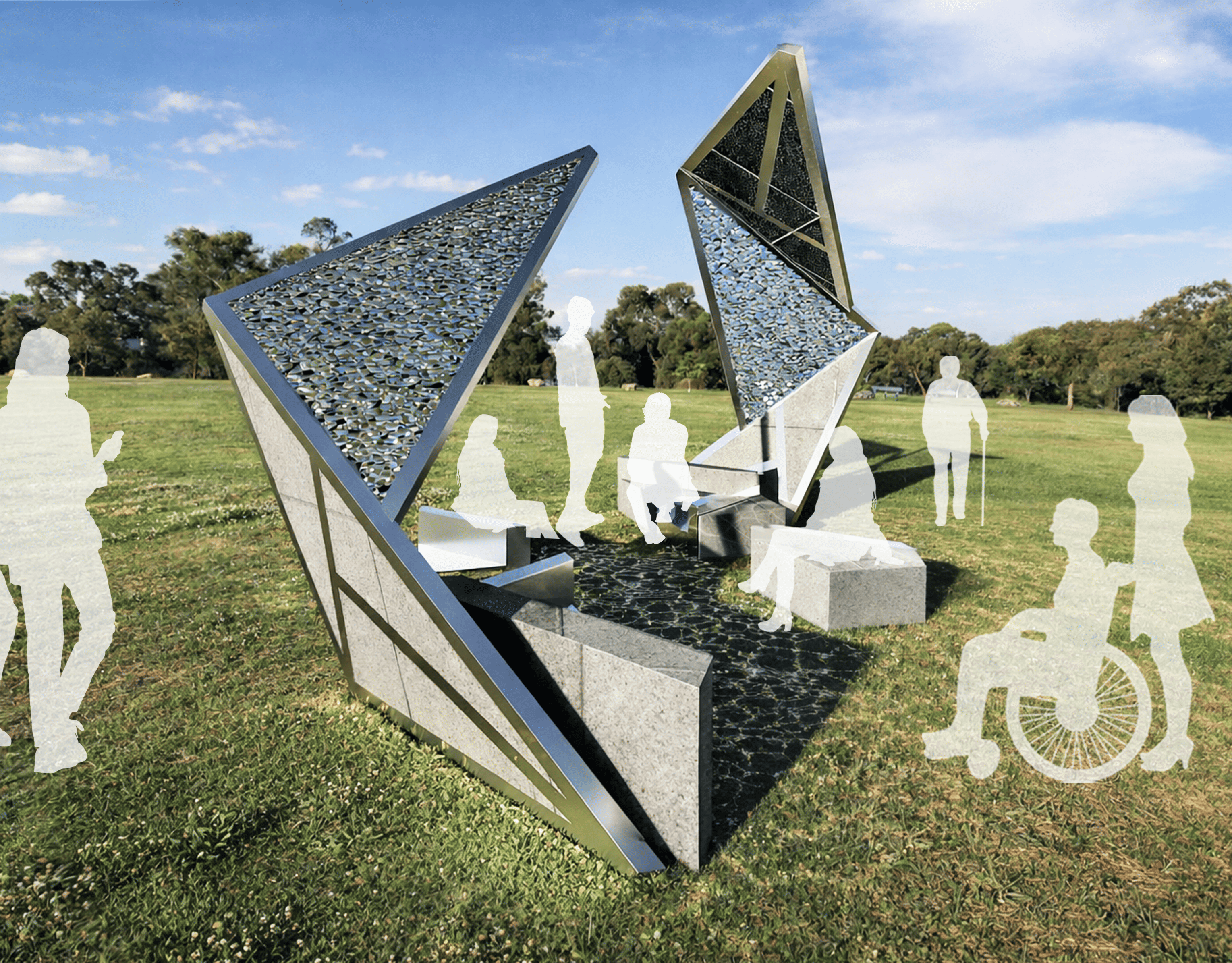 Hasta acá es un proyecto de diseño de equipamiento urbano concebido para un espacio público específico del Parque de la Memoria. La propuesta plantea un dispositivo de pausa y encuentro, pensado como lugar de recuerdo, homenaje y reflexión colectiva. A través de una intervención sobria y respetuosa, el proyecto busca acompañar la experiencia del recorrido, invitando a detenerse y a activar una memoria sensible en el espacio.