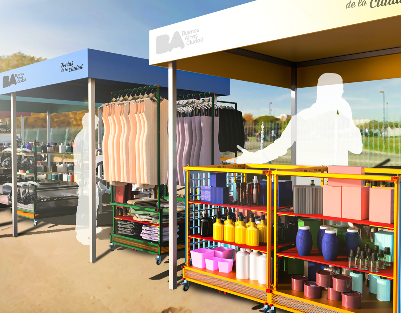 Los módulos pueden personalizarse con accesorios propios o universales, adaptándose a las necesidades de cada puesto. Esta propuesta busca generar un entorno de trabajo más eficiente y dinámico, impulsando la economía local y brindando a los comerciantes una herramienta confiable para su actividad diaria.